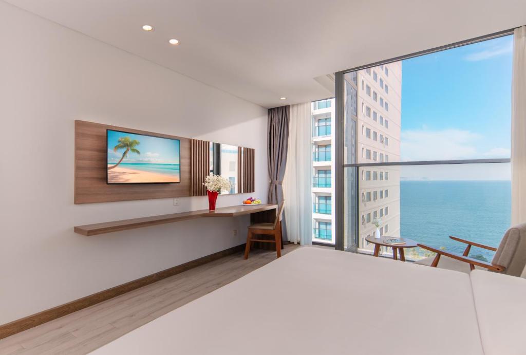 I booked two nights for April 29-30 at a price of 1,030,000 VND, only about 500,000 VND per night during the 50th-anniversary holiday, and I am very satisfied with the service. I have stayed here about 10 times with the criterion of choosing a room that fits my budget and is clean and beautiful while still in the city center, and this is the hotel that I am most satisfied with so far. Location: The hotel is on a one-way street, which is not a problem when I travel by motorbike. The street is bustling with tourists and many restaurants, and it is convenient to get to the beach and night market and the Tran Phu Tower, which are all nearby. The breakfast buffet has enough basic dishes for children, Vietnamese people, and foreigners, so you don't have to think too much about breakfast. A simple meal is filling and delicious, then you can go out to play. The room and equipment are all still very new, with hot water quickly and strongly, the air conditioning is fine, and I especially liked that each person gets two pillows to sleep and cuddle with, helping me sleep well like at home. Additionally, all rooms have windows with views, giving a feeling of spaciousness and brightness, not stuffy like other hotels. The only downside is that the soundproofing is a bit poor. Other than that, everything is good. I am very satisfied and will definitely return and recommend it to anyone in need.