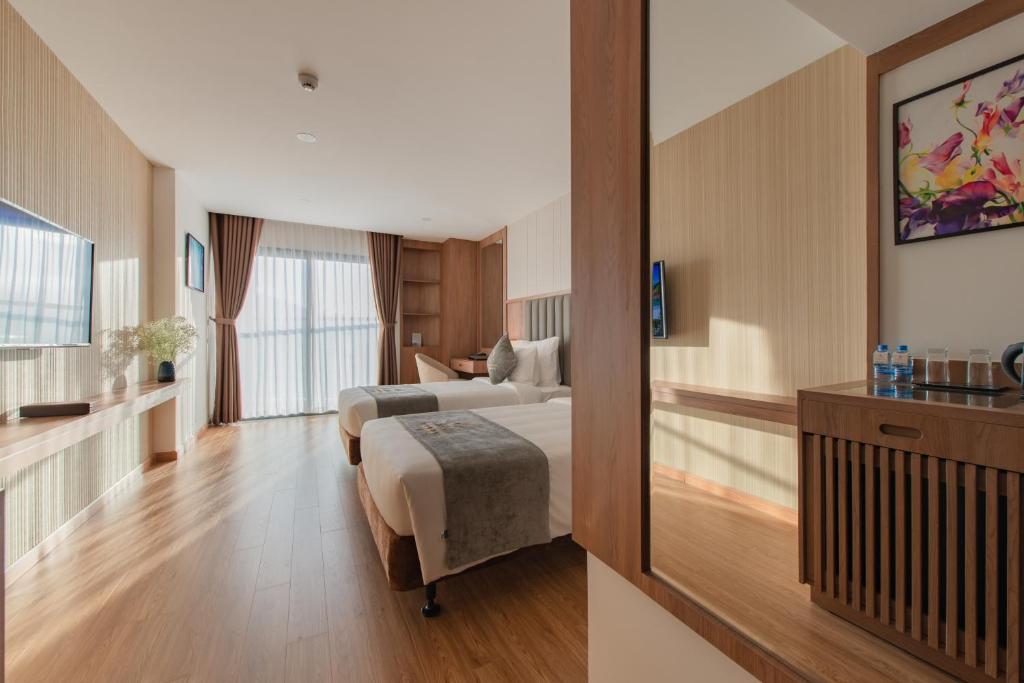 Dear Phương, Thank you very much for sharing your detailed feedback and for recommending Grand Gosia Hotel Nha Trang. We are truly delighted to hear that you enjoyed your stay, especially the room layout, ocean view, and our breakfast selection. It’s wonderful to know that you found our bed comfortable and that our food exceeded your expectations compared to other hotels in the same range. We also appreciate your kind words about our staff, especially the team member who supported you during check-in and breakfast time. At the same time, we sincerely apologize for your experience with our Front Desk team and will address this matter with them to ensure better attention and hospitality toward every guest. Your constructive feedback is extremely valuable to us as we continuously strive to enhance our service quality. We truly hope to have the pleasure of welcoming you back for an even more satisfying stay. Warm regards, Grand Gosia Hotel Nha Trang