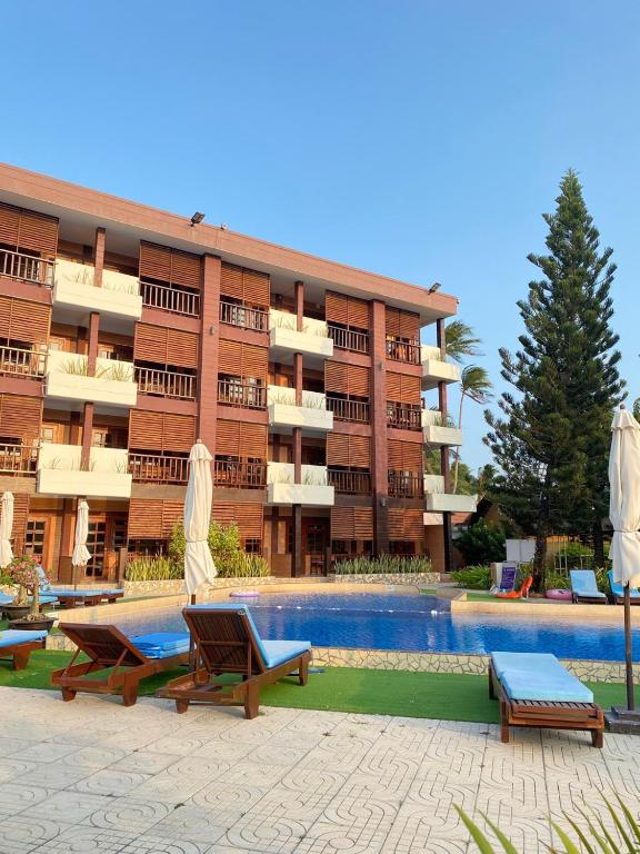 There is a clean swimming pool, great for swimming. The staff is lovely and enthusiastic. Arrived early on Friday, so I was able to check in and get my room early at 12 PM. The beach is clean and beautiful. There is a nice view of the sea. The buffet has fewer dishes compared to larger resorts, but every dish is delicious. It's a small but cozy resort. You can take numerous great pictures here. There is a car parking area in front of the resort. Negative points: they offer car rentals, but the car is a 50cc, which is very weak and hard to start. The water pressure in the shower is low. The lights in the room are dim, and there are no bright lights.