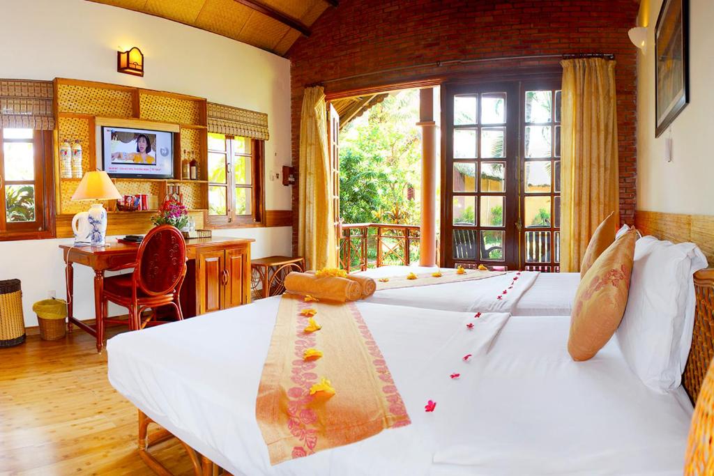 In the evening, satisfy your cravings at the resort's restaurant, which serves a delectable array of Vietnamese and international cuisines. With a focus on using fresh, locally sourced ingredients, the restaurant offers a diverse menu that caters to all tastes. From traditional Vietnamese dishes to Western favorites, there is something for everyone to enjoy.